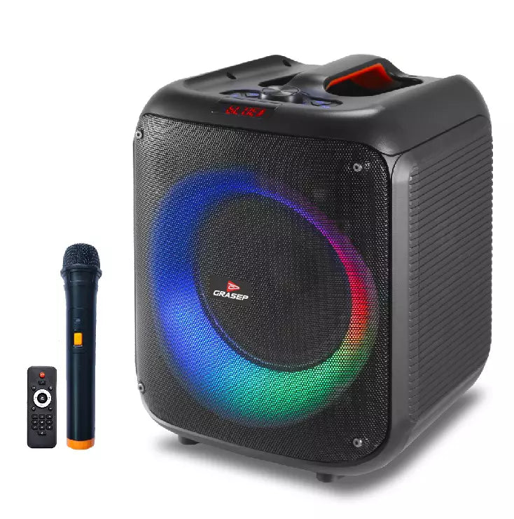 A caixa de som portátil JBL PartyBox Encore oferece até dez horas de diversão ininterrupta. Com alça de fácil de usar e o design à prova de respingos, você pode levar a festa aonde for. Mantenha a batida animada com o incrível som JBL Original Pro Sound e graves profundos. Sincronize as luzes estroboscópicas e a iluminação do anel do show de luzes com suas batidas e cante junto usando o microfone digitais sem fio premium da JBL, otimizados para karaokê e com eco, graves e agudos ajustáveis. Com o True Wireless Stereo, você pode até mesmo emparelhar outras caixas de som para usufruir um som impressionante de verdade. Com o aplicativo PartyBox, você sempre pode controlar a música e o show de luzes para criar o clima perfeito.